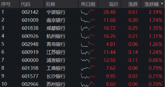 银行股多数走强,截至收盘,宁波银行涨超2%,南京银行、成都银行、杭州银行、青岛银行、江苏银行涨超1%。值得一提的是,农业银行盘中刷新历史新高,为近半个月银行股回调以来的首个新高。